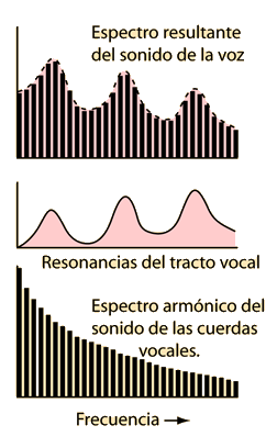 A la hora de conformar una vocal, las cuerdas vocales vibran, produciendo una vibración en el aire en forma de tren de pulsos. A su vez, este tren de pulsos pasa a través del tracto vocal, el cual, dependiendo del fonema que se ha pronunciado actuará como un filtro y modificará las componentes frecuenciales del tren de pulsos.