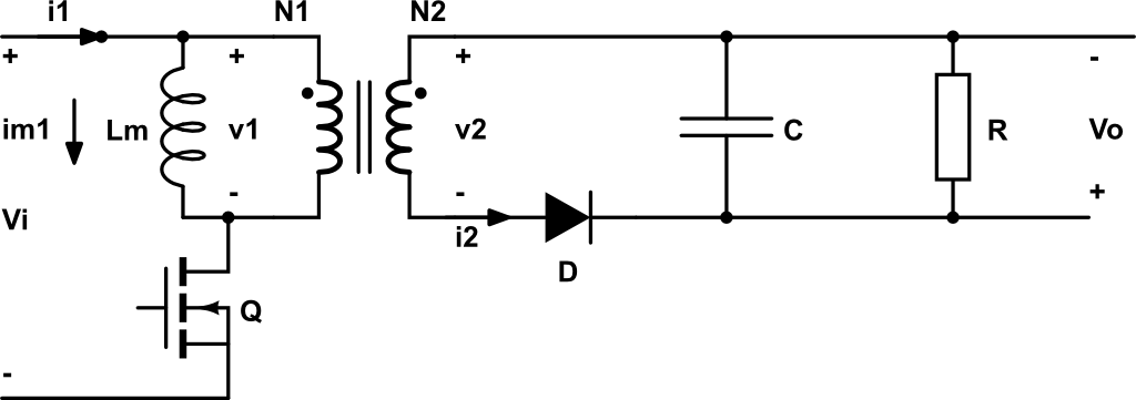 - Entre \(0 \leq t \leq D T_s\) Q: ON. \(i_1\) magnetiza el núcleo del transformador, por lo que genera un flujo …