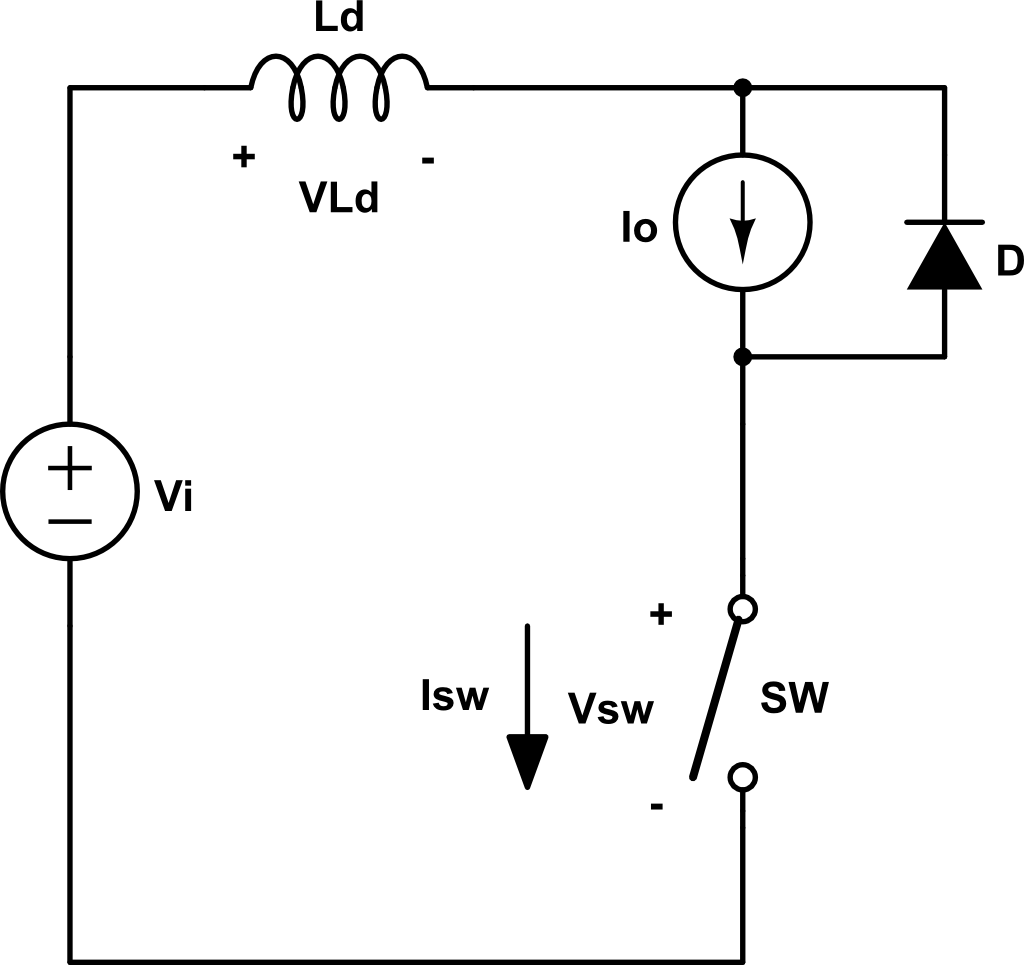 \[ V_{sw} = V_i - V_{L_d} = V_i - L_d \frac{d i_{L_d}}{dt} \]