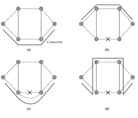 - Conmutación de anillo. Solo se redirecciona en los nodos cuyo enlace no funciona. A diferencia del path-switching, este reencaminamiento no es punto a punto, sino que solo se da en el momento en el que el siguiente enlace no funciona.
