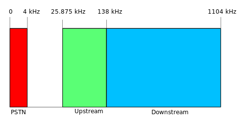 Usa par trenzado (cables de cobre) para transmisión de datos además de voz. El ADSL (Asymmetric DSL), proporciona una tasa binaria distinta para downstream y para upstream. Además, utiliza modulación OFDM. Como ventajas, el despliegue es sencillo y barato. Sin embargo, la velocidad es limitada y la máxima velocidad depende de la distancia a la central office y así como de la calidad de los cables.